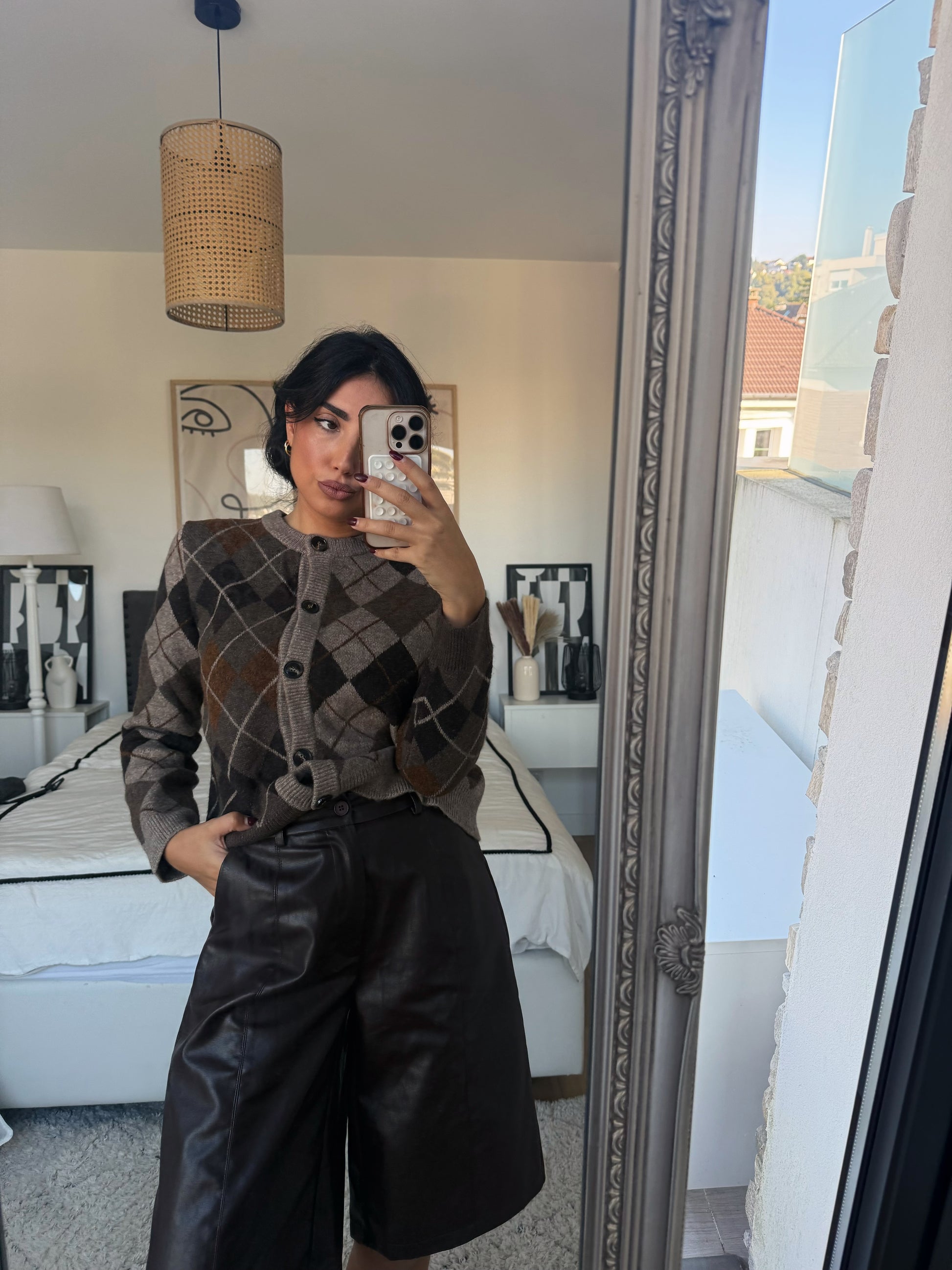 Bermuda choco en simili cuir taille haute.