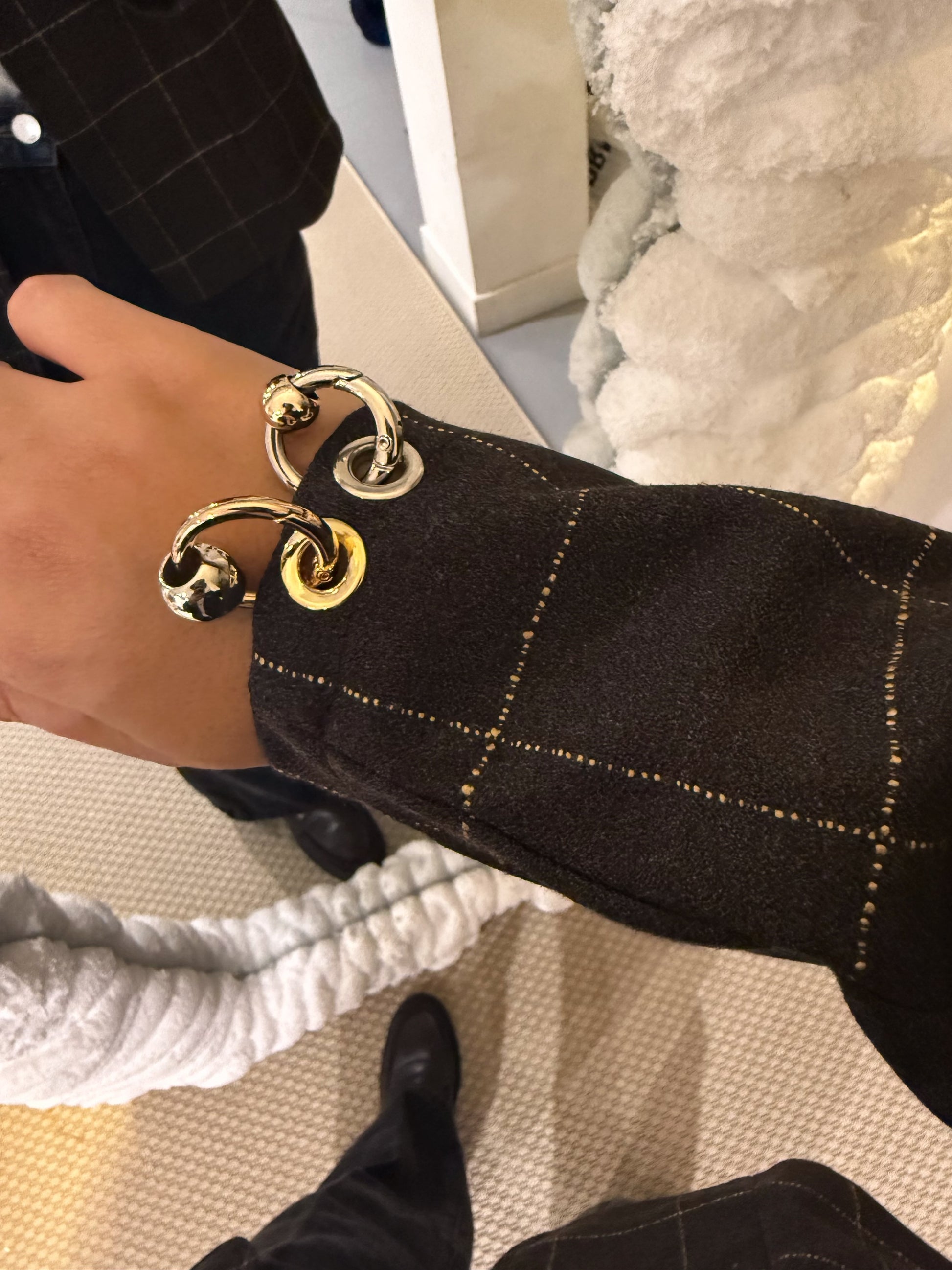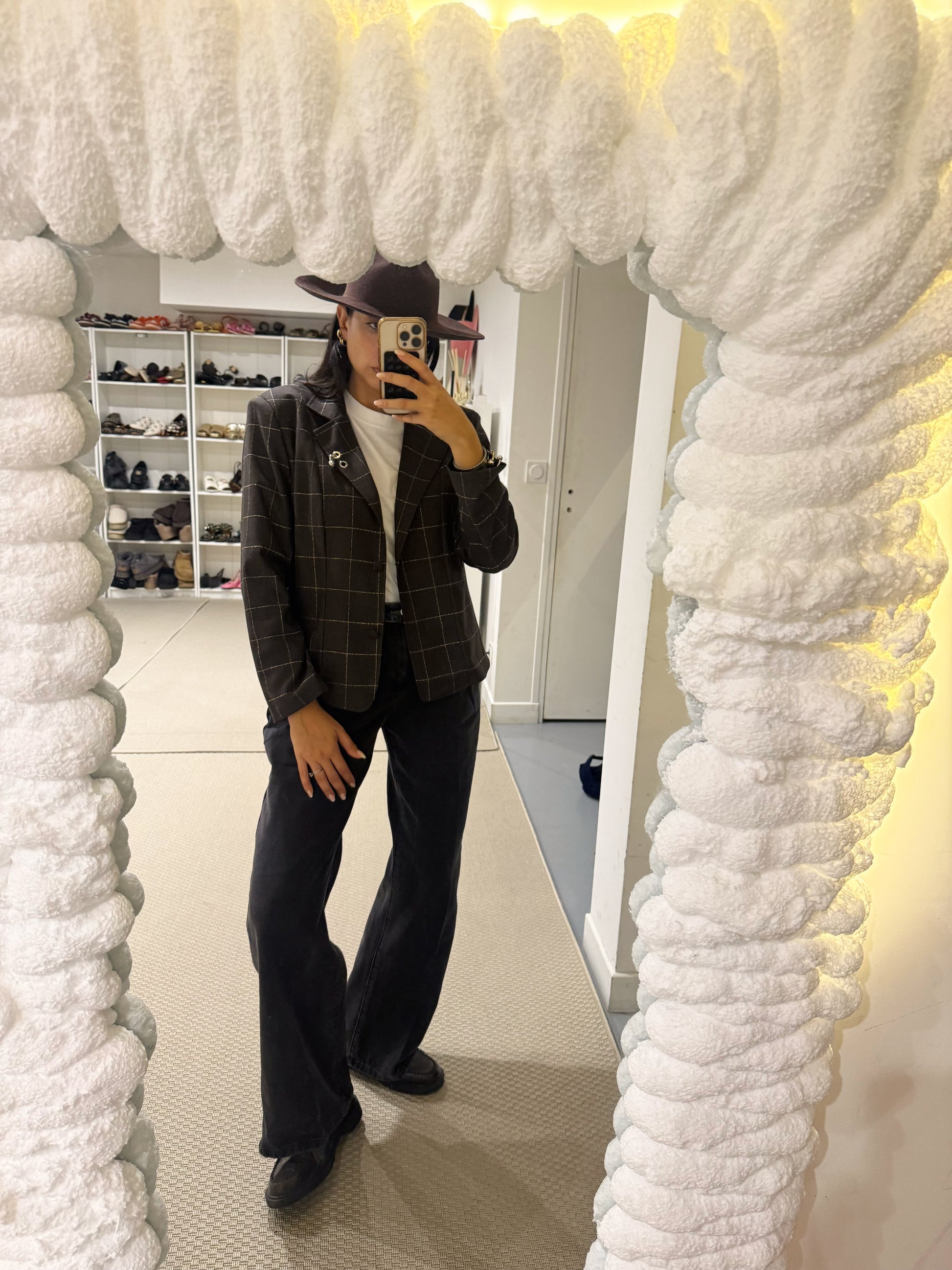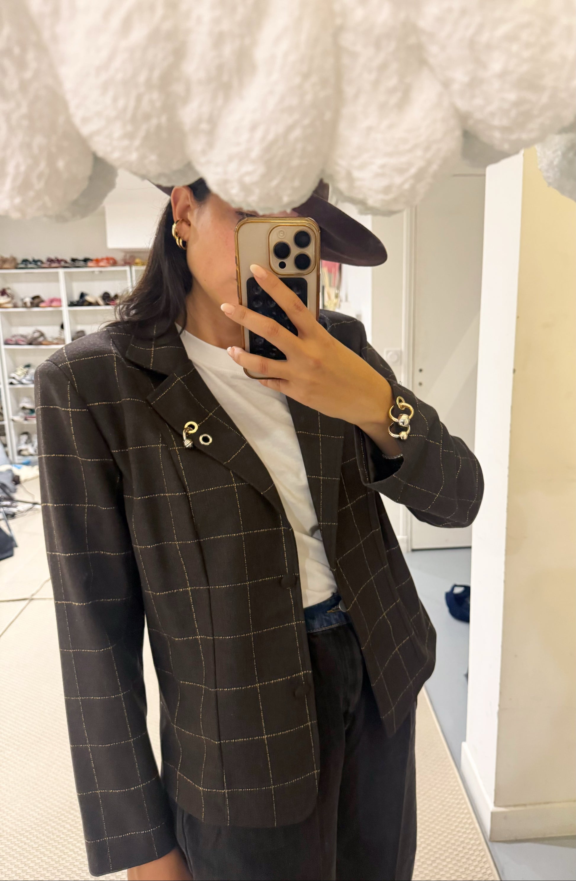 Blazer à carreaux à fantaisies piercing sur le rabat et sur les manches.