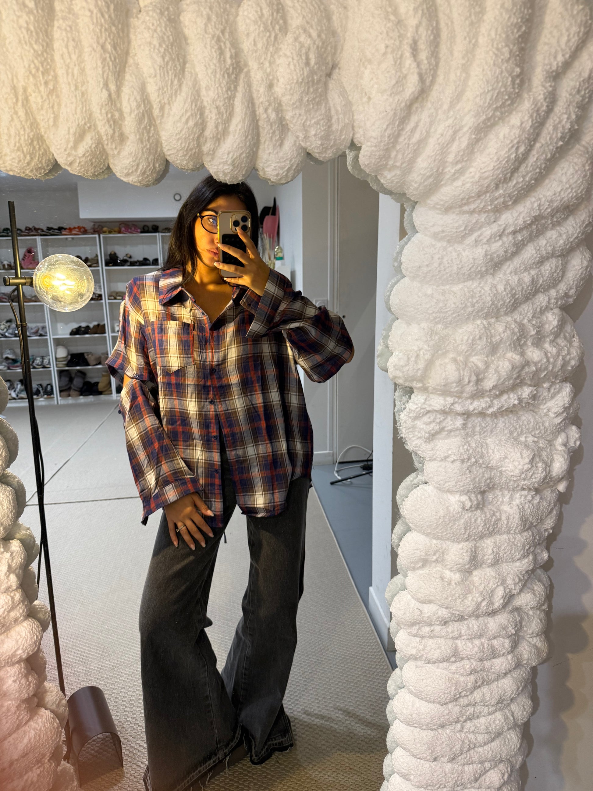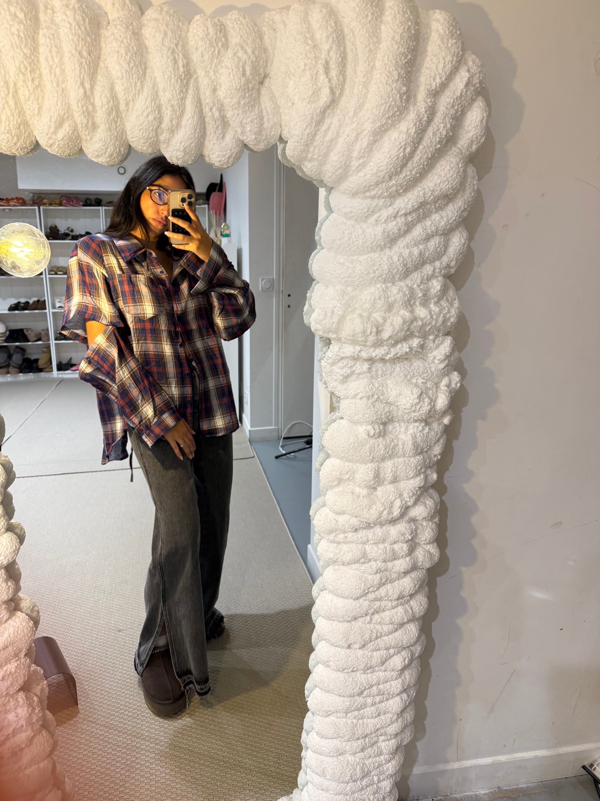 Chemise à carreaux oversize a ouvertures aux coudes. Taille unique