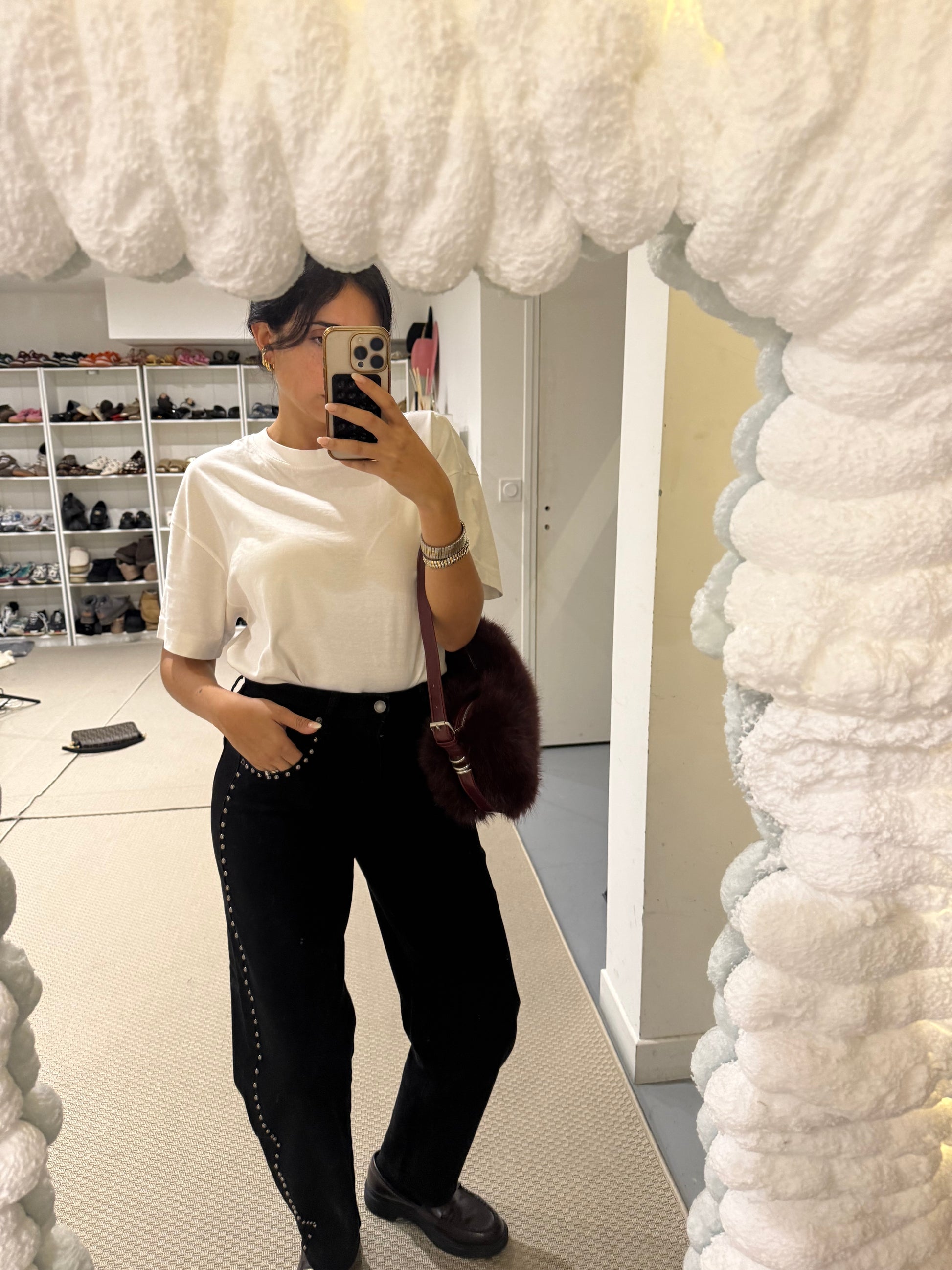 Jean noir coupe droite avec clous sur les côtés et aux poches